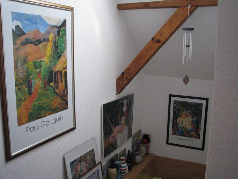 Bücher für Kinder verschiedenen Alters gibt es in einem Regal im Obergeschoss (ein Bild davon findet sich hier)